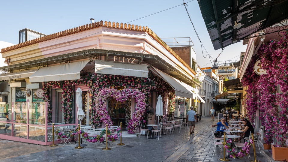 Monastiraki is known for its historical landmarks like the ruins of Hadrian’s Library, the Ancient Agora and the Monastiraki Flea Market. As one of the city’s liveliest and most central neighbourhoods, it’s also become a hotspot for outdoor dining and rooftop bars with views of the nearby Acropolis.
