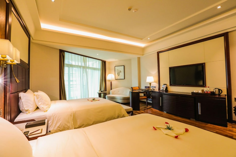 Located in Hengyang Huaxin Hi-tech Zone, Linyin Hotel offer comfortable accommodation only a 5-minute walk from the Ecology Park. It features free WiFi throughout the property. An outdoor pool is free for guests. The hotel is a 15-minute drive from Hengyang Shigu Academy and 20-minute drive from Hengyang Railway Station. Hengyang Nanyue Airport is a 40-minute drive away. It takes 45 minutes to drive to Heng Mountain. The guestrooms in Linyin Hotel Hengyang are all equipped with air conditioning and a flat-screen TV. The private bathroom is equipped with both bath and shower. Some rooms have a balcony with views. The property has a 24-hour front desk offering travel and ticketing services. Free public parking is available. The restaurant offers buffet. Guests are required to show a valid government-issued ID card or passport upon check-in. Disclaimer notification: Amenities are subject to availability and may be chargeable as per the hotel policy.