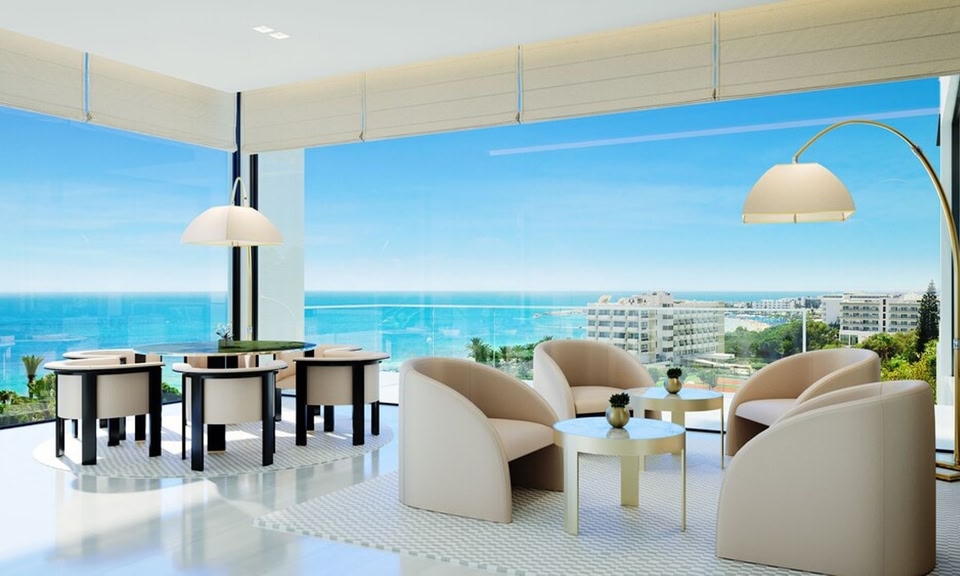 This 5-star resort hotel is just 300 metres from Ayia Napa Beach and 1 km from Ayia Napa’s centre. All rooms have spacious infinity glass balconies, while most come with sea views.