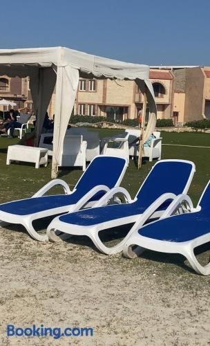 Located just 21 km from Catacombs of Kom el Shoqafa, Chalet with garden Compound group 02 features accommodation in Alexandria with access to a garden, a bar, as well as an ATM. Guests can benefit from a patio and a picnic area.