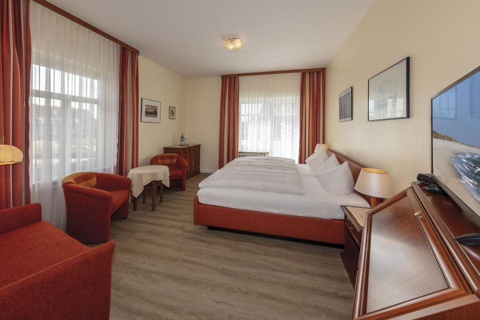 Just steps from the beach in Westdorf, this family-run hotel offers sea views and a seafood restaurant. It is a 10-minute walk from the ferry port on the East Frisian island of Baltrum. The Strandhotel Wietjes has bright rooms with wooden furniture and TVs. Most rooms include a balcony, and all rooms can be reached by elevator. A large breakfast buffet is provided each morning. Wietjes’ restaurant specialises in fresh fish and game dishes. Guests can relax in the Strandhotel’s sauna. There is also a comfortable lounge and a large sun terrace. The car-free island of Baltrum can be explored on foot from the Strandhotel Wietjes. Baltrum is a car-free Island. Please note that the schedule for Baltrum’s Island ferry is continually changing, as ferry-crossing times are dependent on the tides. The travel time from Neßmersiel Ferry Port to Baltrum Island is approximately 30 minutes. For a fee, guests can leave their cars at Neßmersiel Ferry Port, which has a large car park. Disclaimer notification: Amenities are subject to availability and may be chargeable as per the hotel policy.
