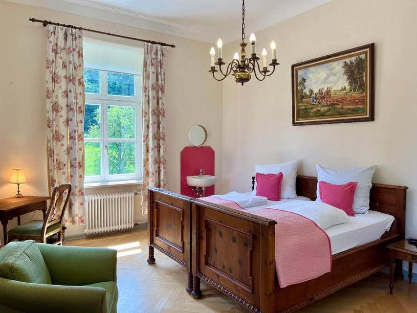 Situated within 27 km of Main station Augsburg and 30 km of Congress Centre Augsburg in Fischach, Schloss Elmischwang provides accommodation with seating area.