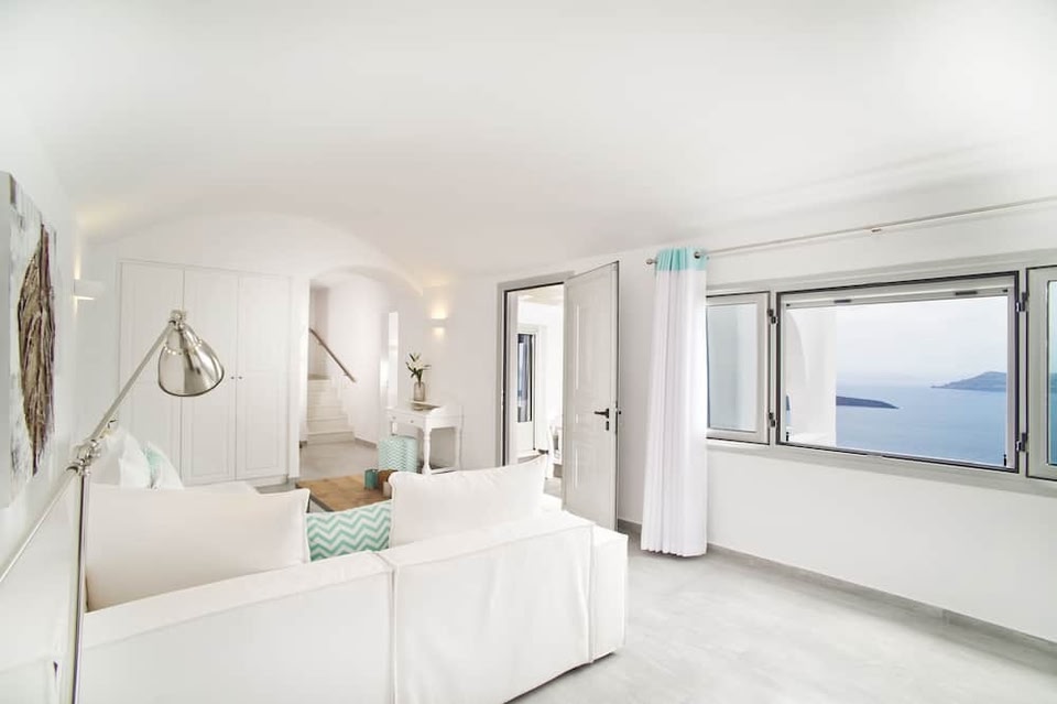 Perched on Caldera cliff, in Firostefani Village, the Cycladic-style Agali Houses features a swimming pool and a furnished sun terrace with panoramic views over the sea and the Volcano. Free WiFi is provided throughout.