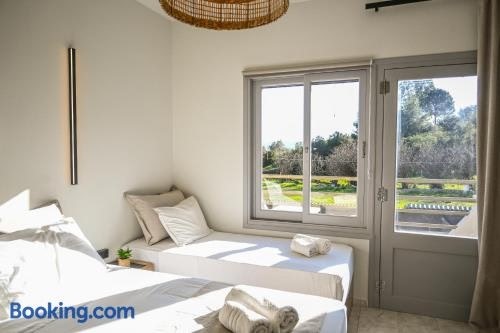 Offering a garden and garden view, Celestia Roοms and Apartments is situated in Agia Paraskevi, 700 metres from Agia Paraskevi Beach. Located around 7.2 km from Skiathos' Port, the apartment is also 3.1 km away from Skiathos Castle.