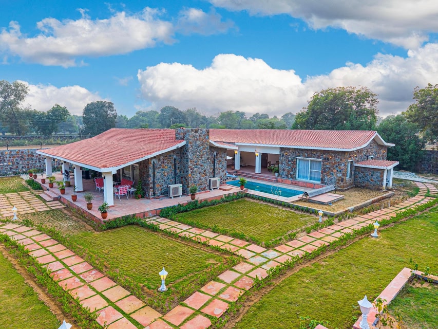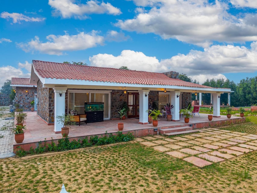 Luxurious Villa AccommodationEscape to a peaceful retreat at amã Stays & Trails Lotus Dhauj, Haryana. This air-conditioned villa boasts 3 bedrooms, a fully equipped kitchen, and 3 bathrooms. Relax and unwind in style with a flat-screen TV and free WiFi.Convenient LocationLocated just 32 km from Tughlaqabad Fort and Qutub Minar, this property offers easy access to popular attractions like MG Road and Humayun's Tomb, both within 40 km. Conveniently situated 41 km from Delhi International Airport, your journey to relaxation begins as soon as you arrive.Free Parking and WiFiEnjoy hassle-free travel with complimentary private parking and stay connected with free WiFi throughout your stay. Book your stay at amã Stays & Trails Lotus Dhauj, Haryana today for a memorable getaway.