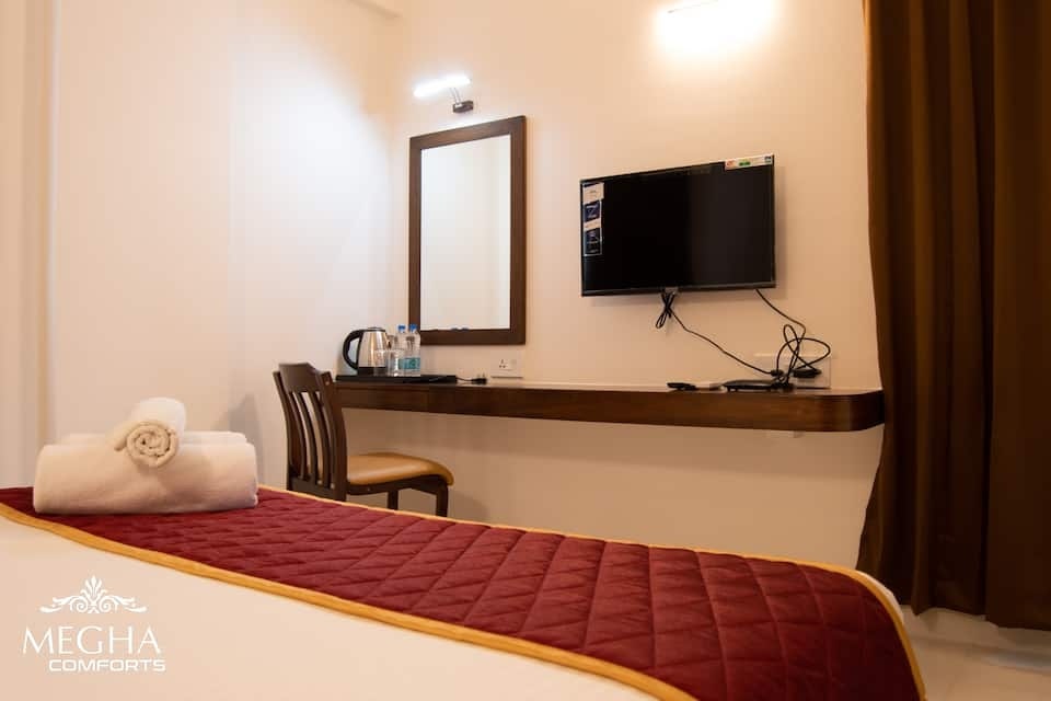 Location A great hotel to have a nice rest before long walks around the city. Hotel «Megha Comforts» is located in Mysore. This hotel is located in walking distance from the city center.At the hotel Free Wi-Fi is available on the territory. Ask for more information when checking in. If you travel by car, there’s a free parking zone. The staff of the hotel will order a transfer for you. Additional services that the hotel offers to its guests: press. The staff of the hotel speaks English.