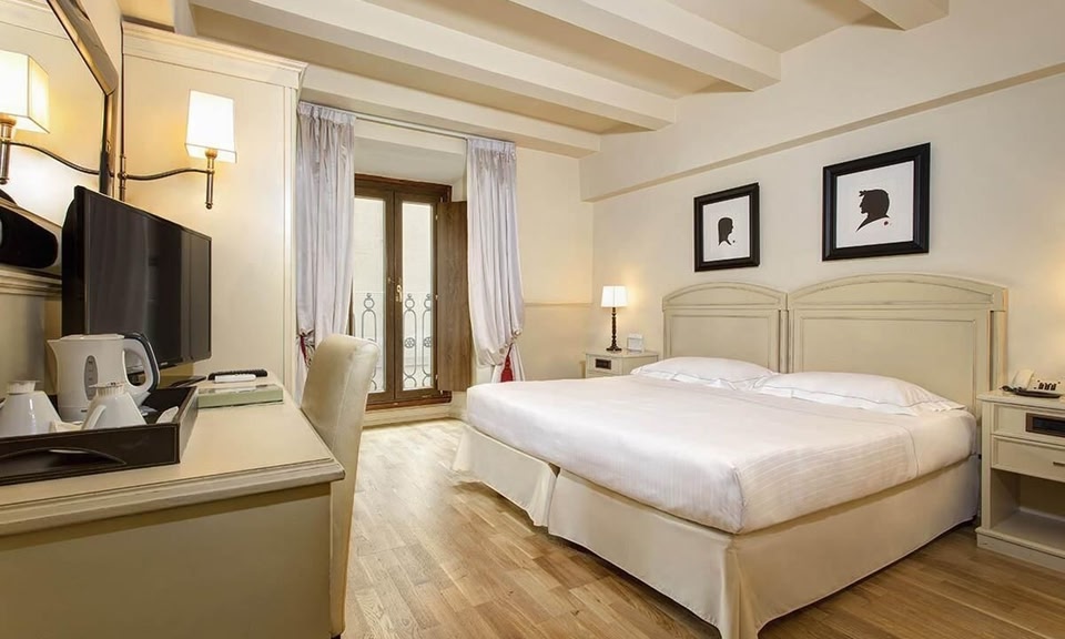 Grand Hotel Cavour has a rooftop terrace with views over Florence Cathedral. It offers a grand entrance hall with free WiFi, marble floors and statues, and elegant rooms with air conditioning.