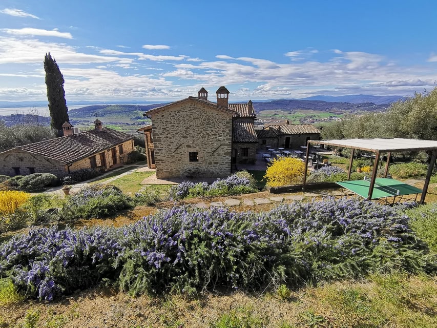 This beautiful 16th-century stone house is in the Umbrian hills and has lovely views of Lake Trasimeno. It is an ideal location for a relaxing break. Set at an altitude of 450 metres, it offers breathtaking views of olive groves and woods.