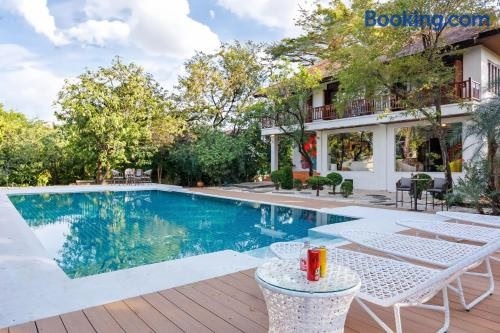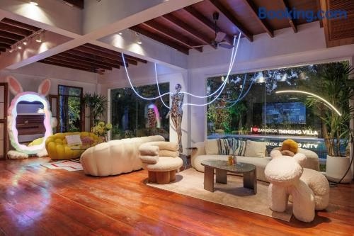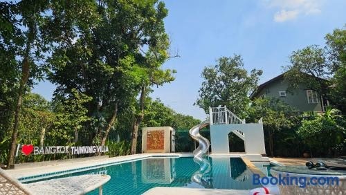 Featuring air-conditioned accommodation with a private pool, garden view and a patio, 曼谷2000平方米庄园别墅 超大泳池sukhmvit位置绝佳 9间卧室 is located in Amphoe Phra Khanong. This property offers access to a balcony, free private parking and free WiFi.