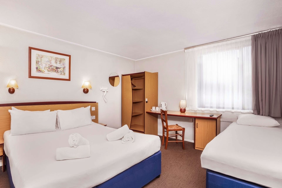 Modern Amenities and Convenient LocationExperience comfort and convenience at the Campanile Manchester – Salford. Enjoy free parking, a modern restaurant, and bar. With Old Trafford just 2 miles away and Manchester centre a 15-minute walk, our location is ideal for exploring the city.Comfortable Rooms and Dining OptionsRelax in our three-star hotel rooms equipped with a work desk, TV with on-demand movies, and tea/coffee facilities. Start your day with a generous breakfast buffet and savor continental cheeses and cooked options. For dinner, indulge in our diverse international menu.Easy Access to Transportation and AttractionsConveniently located near Deansgate Railway Station and the M602 motorway, exploring Manchester is a breeze. Don't miss the nearby Museum of Science and Industry, just a 10-minute walk away. Book your stay at Campanile Manchester-Salford now for a memorable experience.