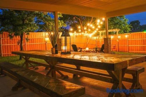 Situated in Dallas, 5.2 km from John Fitzgerald Kennedy Memorial and 5.3 km from AT&T Performing Arts Center, Dallas 4BR Large yard w HOT TUB, Fire pit and basketball Hoop features spacious air-conditioned accommodation with a patio and free WiFi.