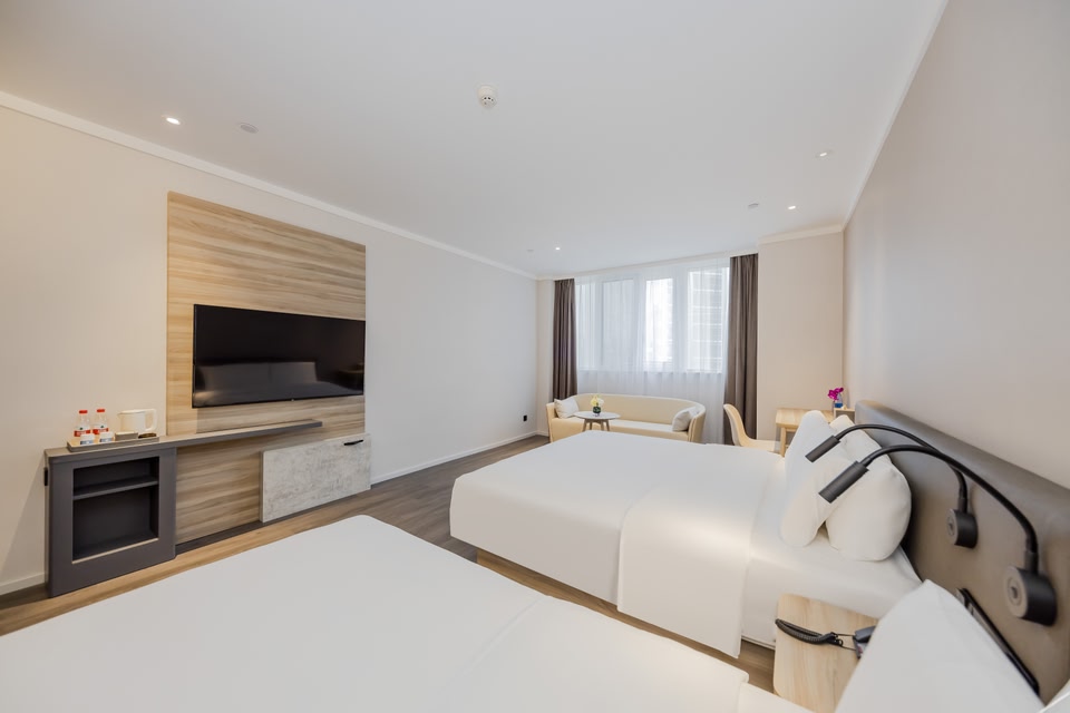 Hanting Hotel Jiaxing South Lake Wanda Plaza provides flawless service and all the necessary facilities for visitors.Stay connected with your associates, as complimentary Wi-Fi is available during your entire visit. When arriving by car, take advantage of the hotel's convenient on-site parking facilities. The hotel offers reception amenities including express check-in or check-out and luggage storage to ensure a comfortable stay for guests. In order to ensure the utmost level of relaxation, the guestrooms feature an inviting design and are equipped with all basic necessities, creating a delightful stay experience. To ensure a pleasant stay, a selection of rooms at hotel come furnished with linen service and air conditioning, all designed with your ease in mind.Selected rooms offer in-room amusement like television as a source of entertainment for guests to enjoy. Within specific rooms, bottled water, instant coffee and instant tea is conveniently available for your use.Understanding the significance of bathroom facilities in enhancing visitor contentment, hotel offers a hair dryer, toiletries and towels within a few chosen chambers. Various excellent meal offerings at hotel ensure that enticing and easily accessible options are constantly available.