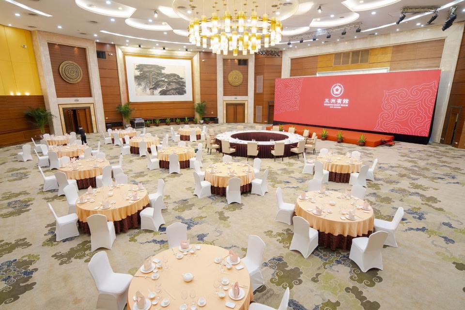 The luxury five-star Wuzhou Guest House (Shenzhen Wuzhou Binguan) is located in the central district of Futian and convenient access to the city center, the railway station and the airport. The Wuzhou provides 156 guestrooms ranging from luxury rooms to deluxe suites. All of the rooms are equipped with international direct dial phones, colour televisions and central air-conditioning. The hotel has numerous facilities fitting for a hotel of this standard. All guests have access to the hotel's swimming pool, tennis courts, the hair & beauty salon, the disco, the karaoke room, massage and sauna. For those on business, the hotel's International Conference Hall is equipped with advanced audio visual systems and an simultaneous interpretation device. There are also ten meeting rooms for both large and small meeting or seminars. The business center provides facsimile, photocopying, word-processing services, as well as secretarial work and Internet access. The hotel has three restaurants that between them serve all kinds of Chinese and Western cuisine.