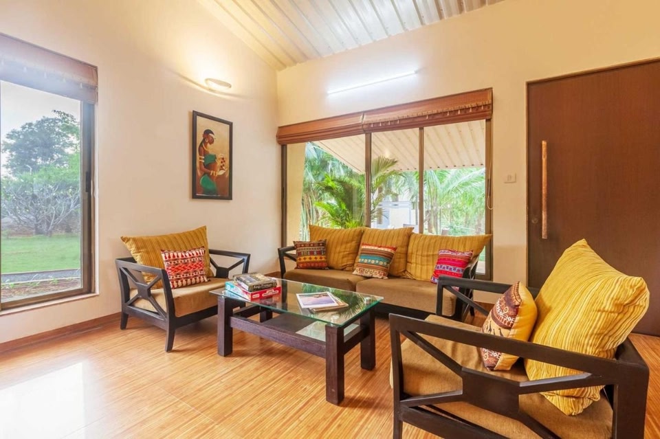 Located in Trimbak, 26 km from Someshwar Temple and 28 km from Pandavlena Caves, StayVista's Green Grove - A Modern Mountain-View Retreat with Lush Lawn offers a garden and air conditioning.