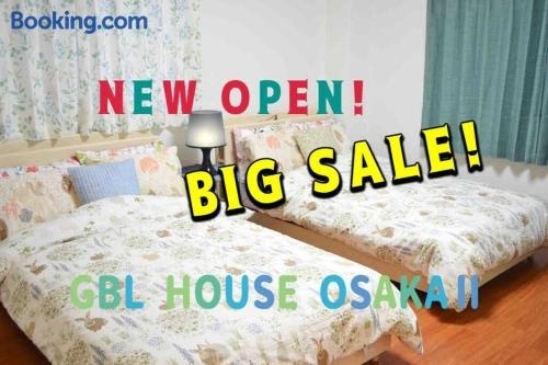 Situated in Osaka, 1 km from Namba Station and 1.1 km from Naniwa Park, 212gblhouse, 大阪中心部, 道頓堀, 難波, 心斎橋, 黒門市場エリア!USJもすぐ!駅から徒歩1分の広いおしゃれな部屋! offers air conditioning. It is set 1.1 km from Motomachinaka Park and features a lift.