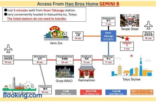Located in Tokyo, 1.3 km from Daiju-in Shrine and 1.3 km from Shibamata Toys Museum, Hao Bros Home Gemini B provides air-conditioned accommodation with a balcony and free WiFi. It is situated 1.
