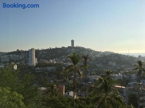 Boasting air-conditioned accommodation with a private pool, sea view and a terrace, Departamento con vista al mar is situated in Acapulco. This property offers access to a balcony and free private parking.