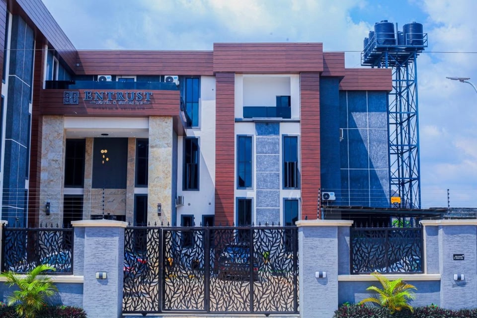 Luxurious AccommodationExperience a lavish stay at Entrust Hotels in Owerri. Our 4-star property offers air-conditioned rooms with free WiFi and private bathrooms. Enjoy the comfort of room service and a 24-hour front desk at your disposal.Dining and EntertainmentIndulge in delicious meals at our on-site restaurant and unwind with a refreshing drink at the bar. Take in the city view from select rooms and relax on the terrace while savoring your favorite beverage.Convenient LocationLocated just 28 km from Sam Mbakwe Airport, Entrust Hotels provides easy access for travelers. Whether you're here for business or leisure, our hotel ensures a seamless and enjoyable stay.Ready to elevate your travel experience? Book your stay at Entrust Hotels now!