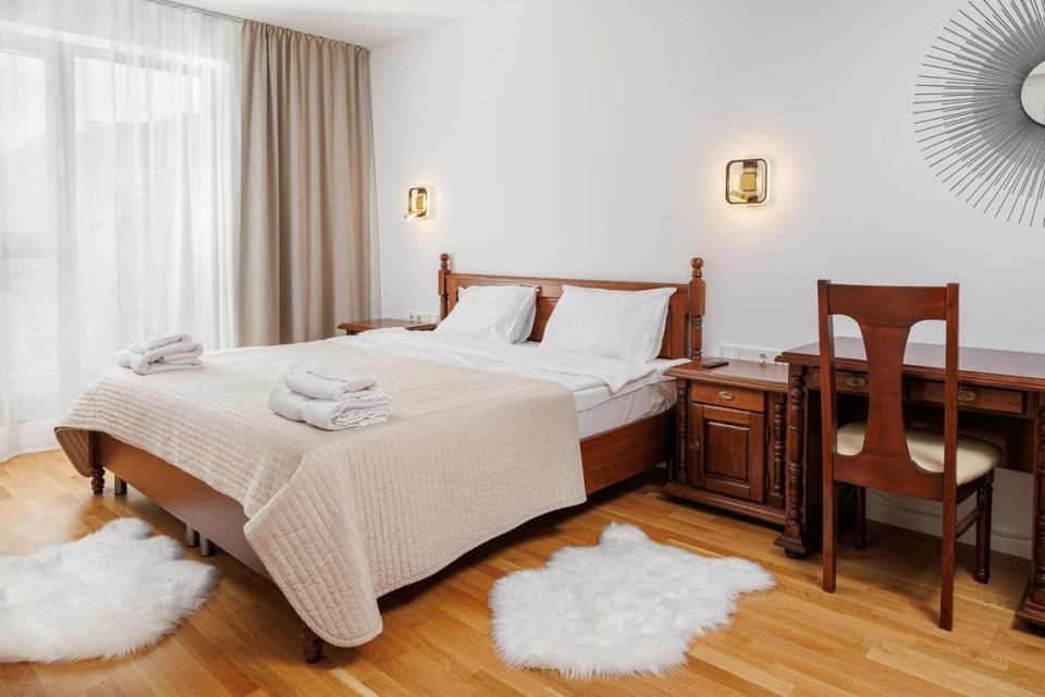 Location Want to save money while travelling? It’s easy: hotel «Cosmopolit Booking» is located in Brasov. This hotel is located in walking distance from the city center.At the hotel Free Wi-Fi on the territory will help you to stay on-line. If you travel by car, there’s a parking zone. Accessibility: there is an elevator/lift. At the guests’ disposal, there’s also a laundry and a safe-deposit box.