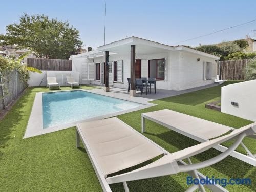 Situated in Sitges and only 2.4 km from Ribera Beach, Casa con piscina privada en Sitges features accommodation with mountain views, free WiFi and free private parking. The air-conditioned accommodation is 37 km from Magic Fountain of Montjuic.