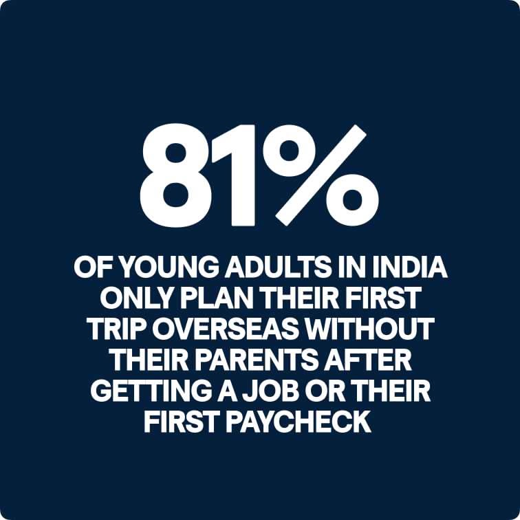 Whilst young Indians certainly have a taste for travel, they’re being careful about when they plan their first trip overseas without their parents. According to our research*, 47% of Indians aged between 18-25 are planning to take a trip overseas for leisure without their parents. But for 81% of young Indians, this is only once they have a job or they’ve got their first pay check.